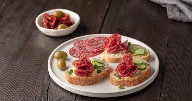 Именно колбаса и блюда из нее — любимые зимние салаты, бутерброды, брускетты и нарезки — традиционно становятся украшением новогоднего застолья. Пусть ужин с самыми близкими будет уютным, а праздничный стол действительно радует вкусом и изобилием!